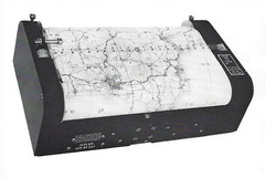 Positionsskrivare. Kartan på spolarna drevs upp eller ned med