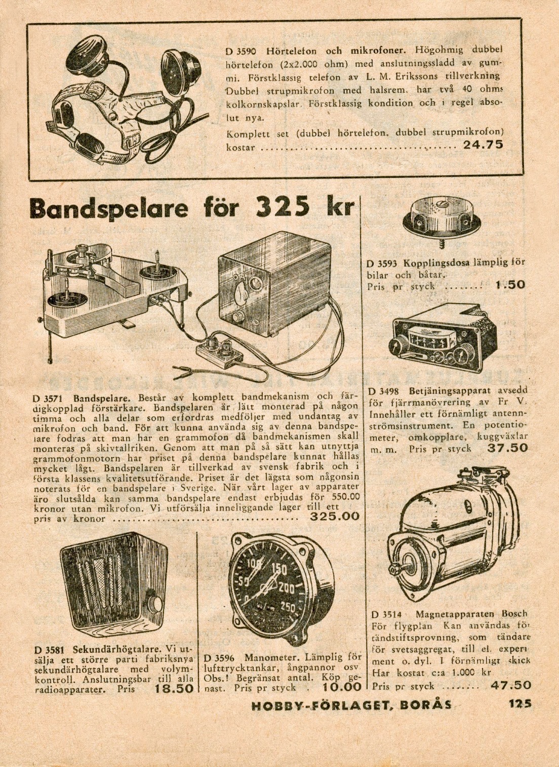 Utdrag ur Hobbyförlagets katalog 1955.