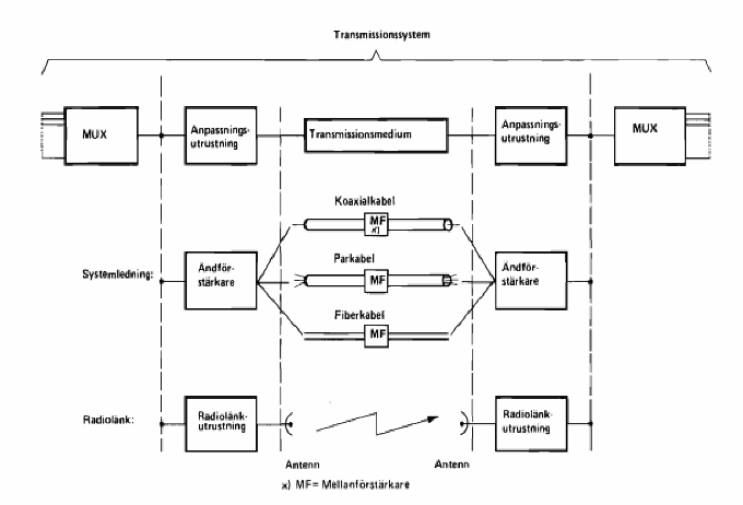 användas för talöverföring eller dataöverföring inom talkanalens gränser. Utveckling mot flerkanalssystem Multiplexutrustning En multiplexutrustning (även kallad signalomvandlare) används för att göra det möjligt att överföra större mängder signaler/information (tal och data) som en enda komplex signal över ett transmissionsmedia, såsom koaxialkabel, radiolänk eller fiber.