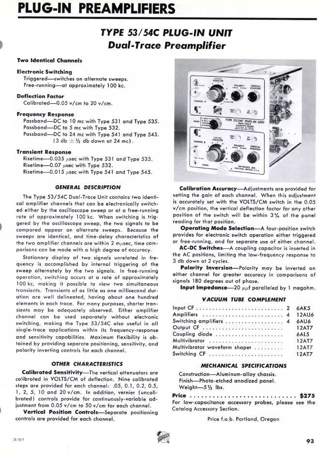 Utdrag ur Tektronix Catalog 1957.